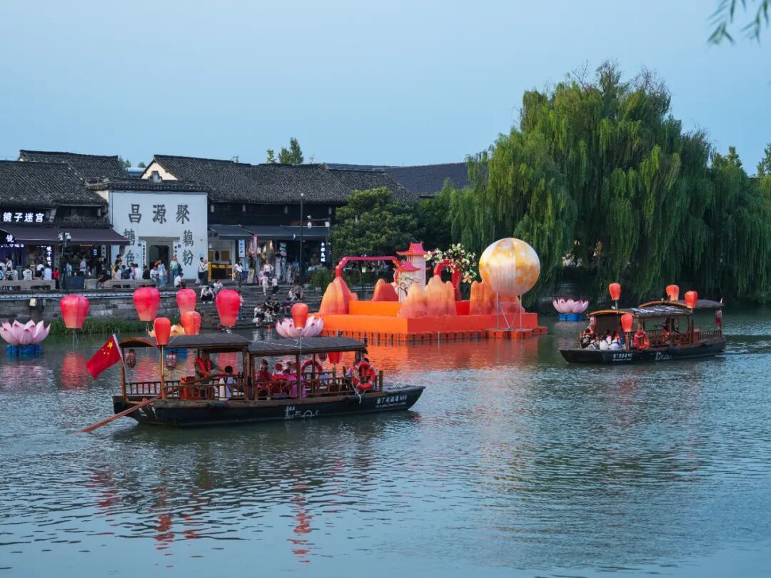 塘栖古镇化身为“江南梦”的实景舞台。摇橹船夜游与孔明灯祈愿成为假期最受欢迎的体验组合。古戏台前,玉兔灯饰与国旗灯笼相映生辉;稀隐草坪上,数百盏LED孔明灯携祝福升空,并通过风筝线回收实现环保与浪漫的统一。“我们希望在大运河畔,用年轻人的玩法激活人文底蕴。”艺术街区主理人梁天威表示,这类参与感强、互动性高的活动,使热度远超预期。