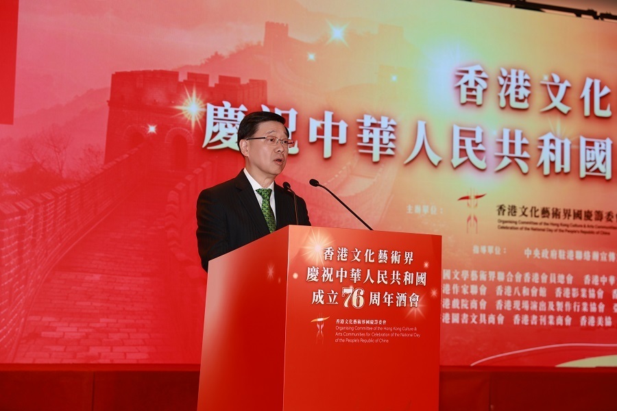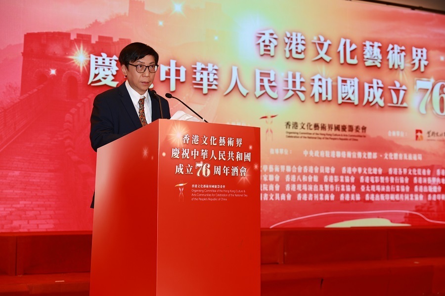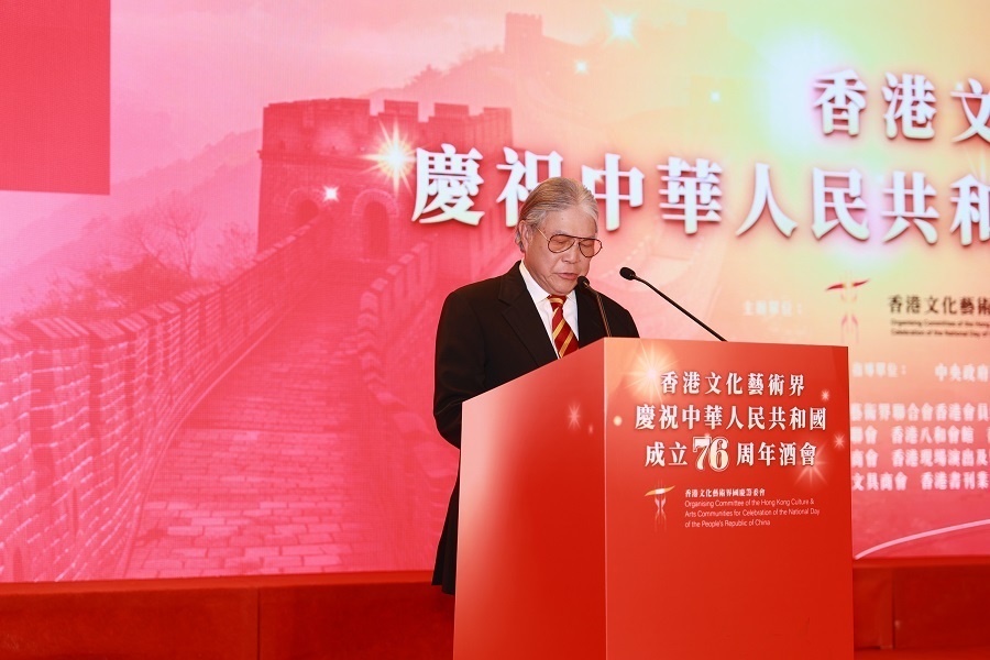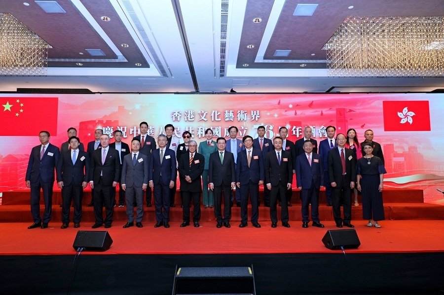 香港文化艺术界庆祝中华人民共和国国庆筹委会借「双庆之年」,10月9日在香港金鐘JW万豪酒店宴会厅隆重举行「香港文化艺术界庆祝中华人民共和国成立76周年酒会」,一众本地文化艺术界精英及业界友好,聚首一堂,同贺国庆,并共同纪念抗战胜利80周年。