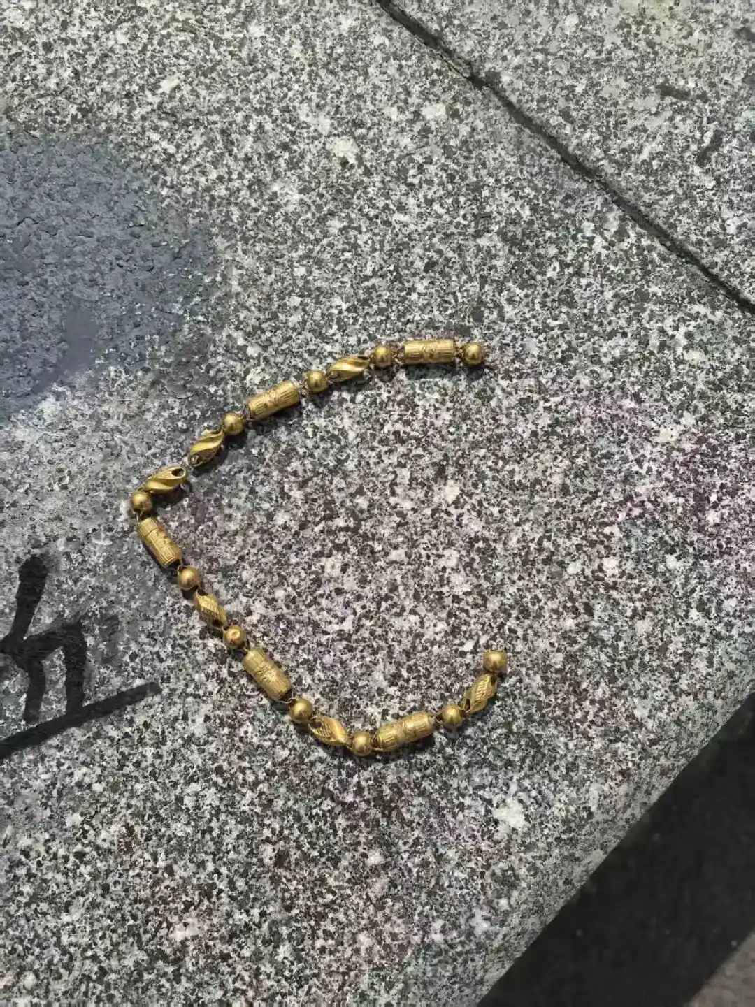 经询问,原来车上的“熊孩子”情绪失控,一把扯断了正在开车的父亲脖子上的金项链,并强行打开了正在行驶中的车门,将手中的部分金项链甩出了车外。