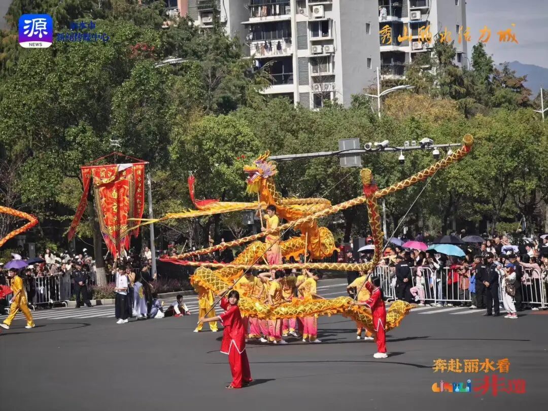 开幕式结束后,现场紧接着举行了“光影里的非遗嘉年华”活动,来自丽水9县(市、区)以及丽水学院、丽水职业技术学院的11个非遗方阵依次登场,以饱满的热情和生动的演绎尽情展现各地最具代表性的非遗特色,获得了在场嘉宾、市民群众的广泛好评。