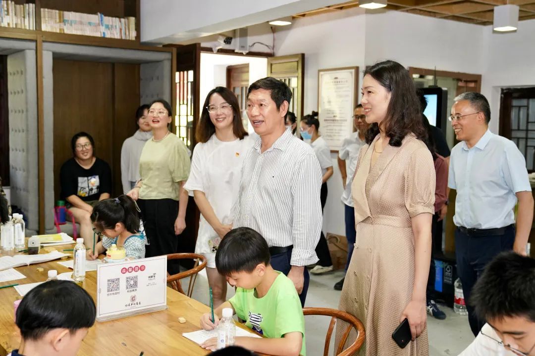 炎炎夏日,乡村文化礼堂里的春泥计划活动室、书画室成了孩子们暑期的好去处。在白马塘村文化礼堂,徐小洲仔细询问文化礼堂的运行情况,还与村民们深入交流,了解孩子们在此学习、开展文体活动等情况。