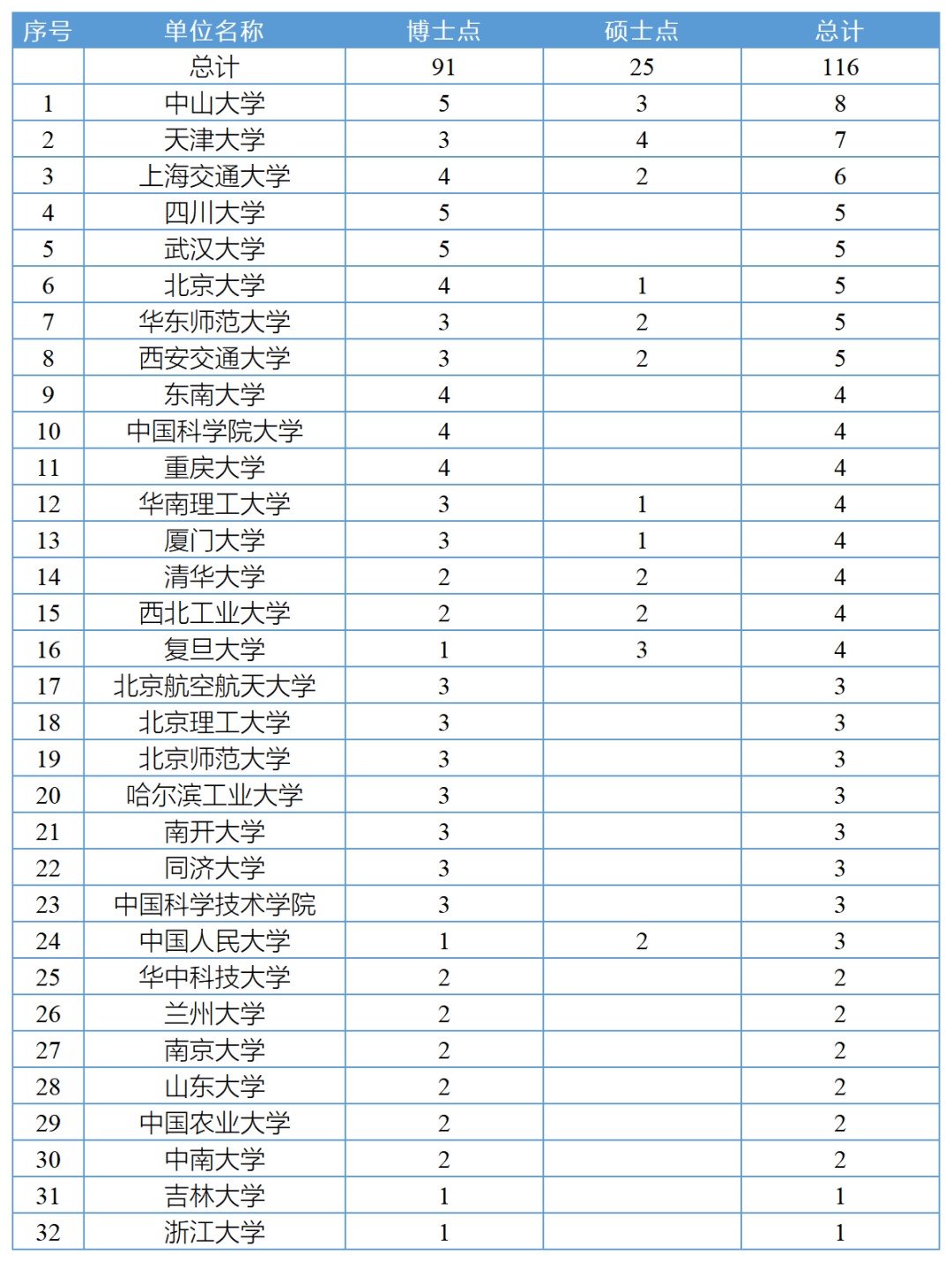 全国32家学位授权自主审核单位