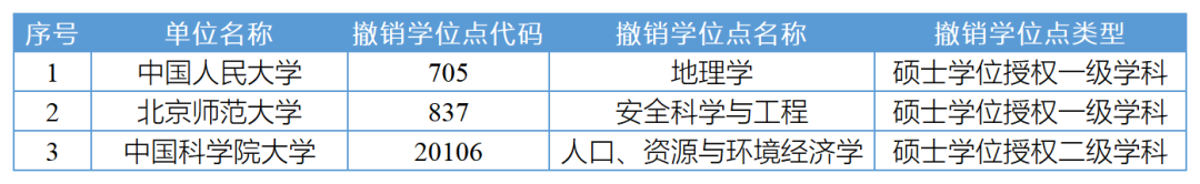 共撤销学位授权点3个