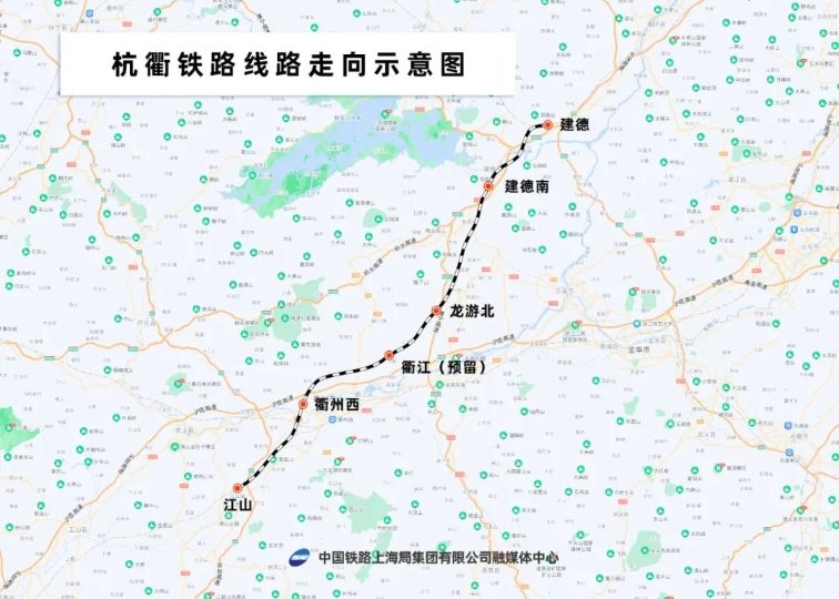 杭衢铁路是浙江省内联通杭州市与衢州市的一条快捷高铁通道,新建正线全长约131公里,设建德、建德南、龙游北、衢江(预留)、衢州西、江山6座车站,设计时速为350公里。