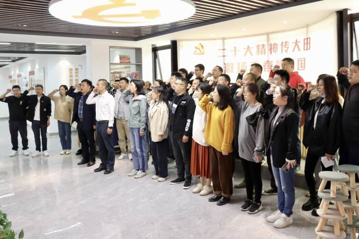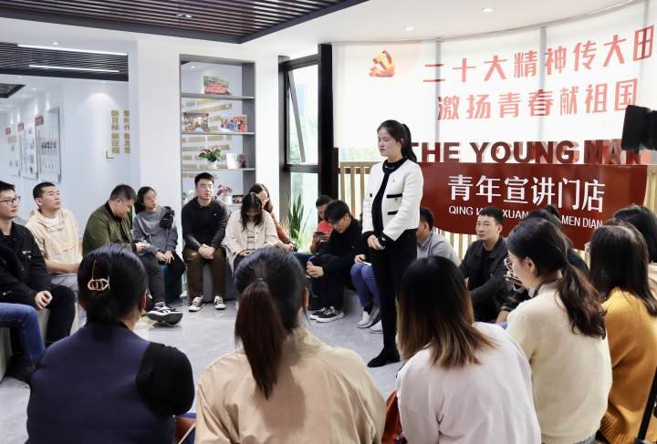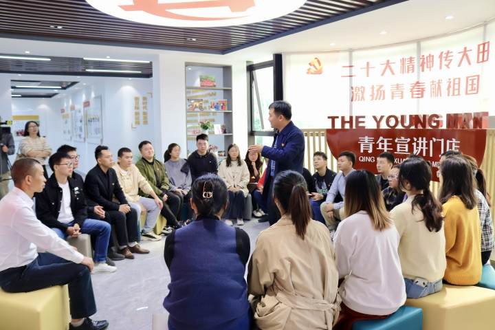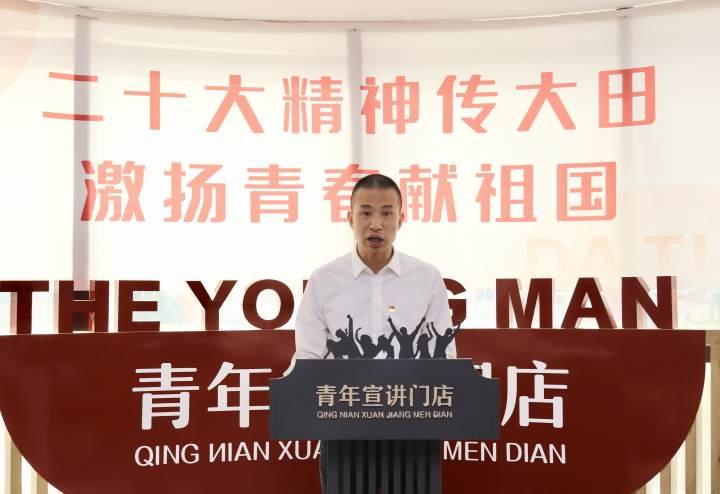 在青年宣讲门店,徐世贤带领全体党员重温入党誓词,并结合青年工作实际,将二十大报告中青年关心的热点难点问题进行了重点讲解,要求广大青年坚定不移听党话、跟党走,涵养“傻气”、“灵气”、“霸气”,提升定力、增强笔力、勤练脚力、抗住压力,铆足拼劲、闯劲、韧劲、狠劲、巧劲,做有理想、敢担当、能吃苦、肯奋斗的新时代好青年。