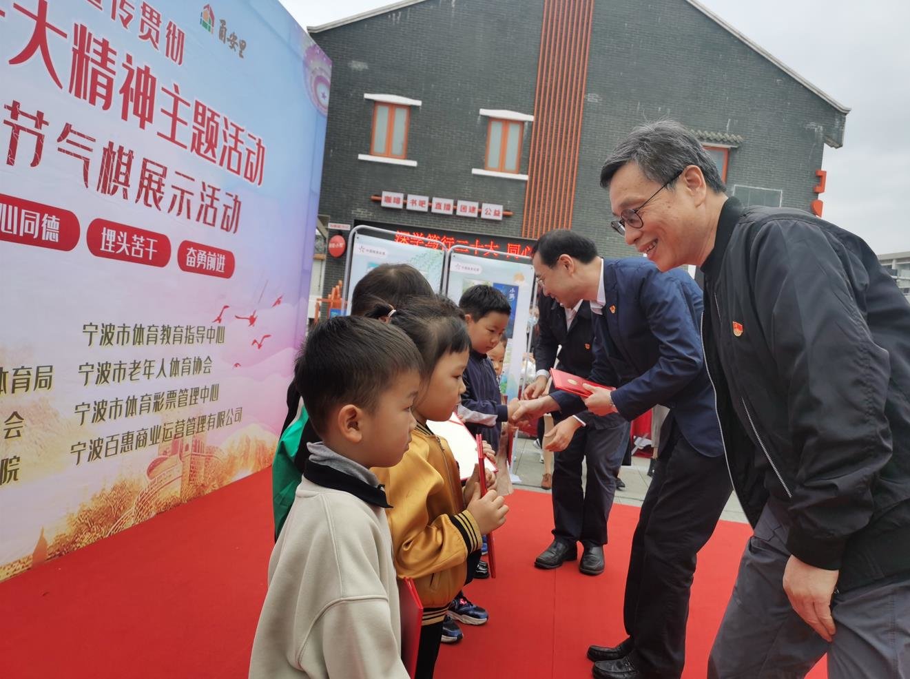 11月27日,一场以学习宣传贯彻党的二十大精神及传播中华文化为主题的幼体活动在宁波城隍庙举行。当天,40多人齐聚城隍庙甬安里讲堂,共同过了一次有意义的党日活动。同时,24对亲子在城隍庙步行街展示了一场传递中国传统节气文化的智力运动对决。宁波市体育局党组成员、体育总会专职副主席任乐波,海曙区原区委常委、宣传部部长、宁波市老年人体育协会副主席兼秘书长石贤义,宁波市幼儿体育协会主席、宁波幼儿师范高等专科学校副校长董刚,宁波市海曙区文化和广电旅游体育局党组成员、二级调研员徐平等参加活动。