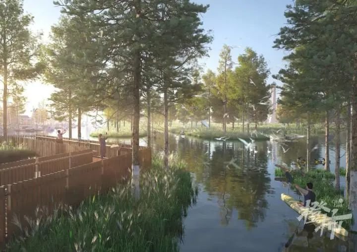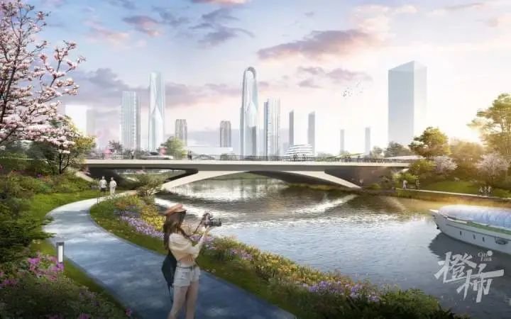 这里将形成集水上巴士、云轨、骑行道、跑步道、慢行道为一体的综合慢行交通网络,实现多种方式的交通转换。
