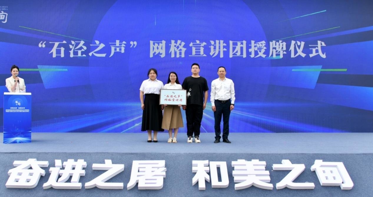由青年名嘴、业务骨干、专业讲师组成的“石泾之声”网格宣讲团授牌成立,他们将深入网格常态化开展宣讲活动,引导群众主动参与社会治理。