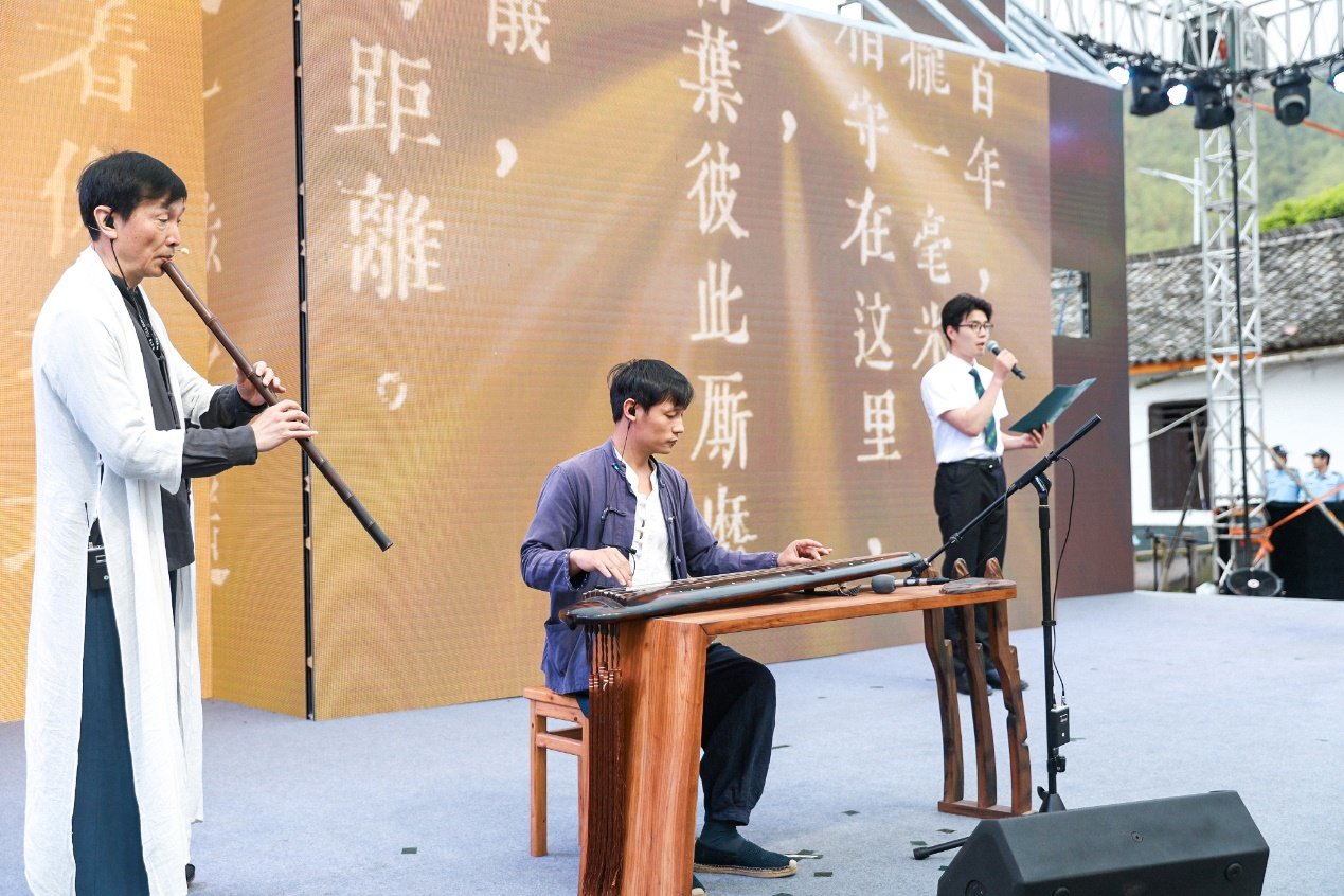 4月22日,芦茨溪畔,古色古香的民宅文安楼前,竹笛悠扬,诗香弥漫,桐庐富春江诗社高校诗社联盟音乐诗会在古村落与山水对话。桐庐富春江诗社高校联盟的成员诵读着自己创作的诗歌,畅谈对“结庐在桐庐”的理解。