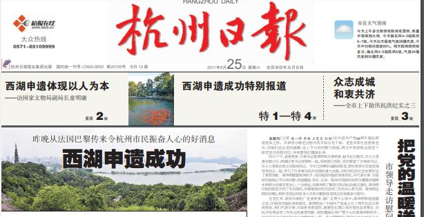 这一年的6月24日,杭州西湖文化景观被列入《世界遗产名录》,成为中国第41处世界遗产。
