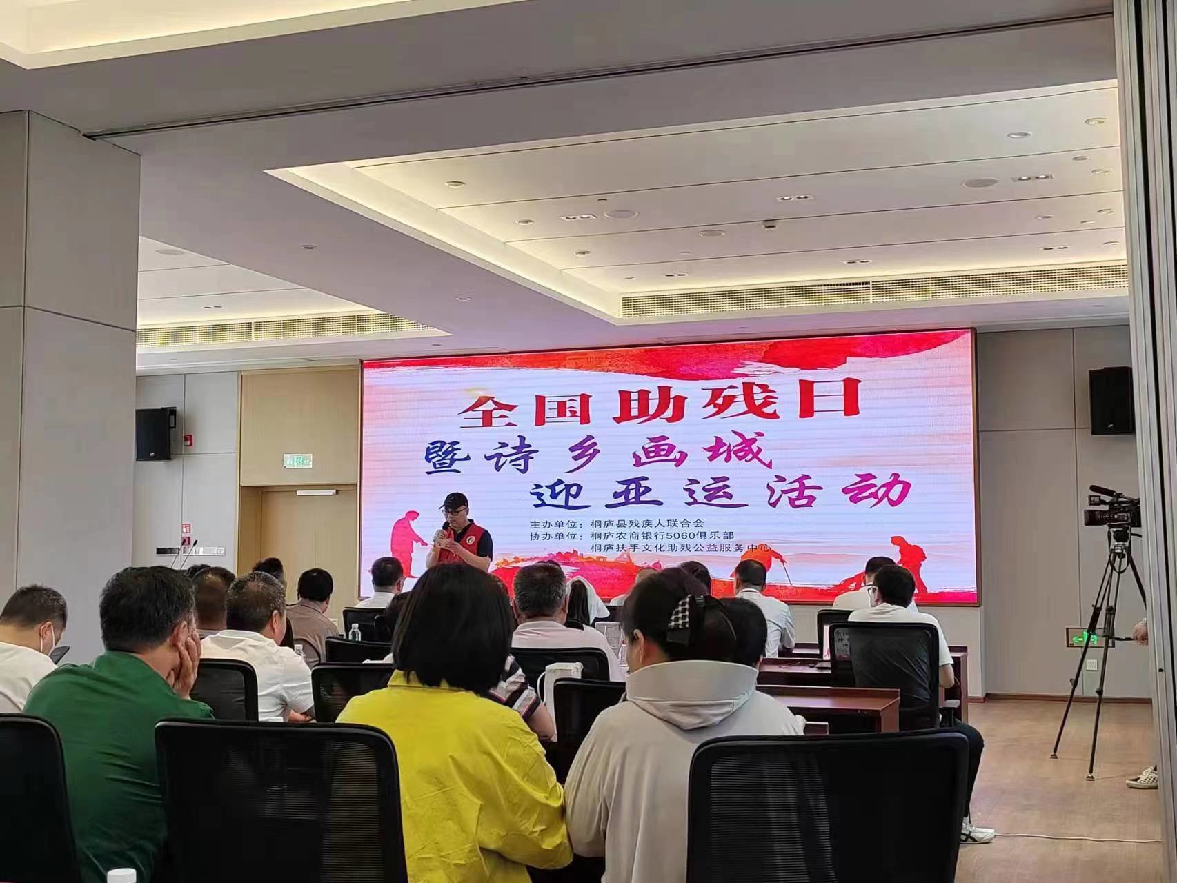 随着第33个全国助残日脚步的临近,近日,在桐庐农商银行5060俱乐部,一场全国助残日暨诗乡画城迎亚运活动正在举行。