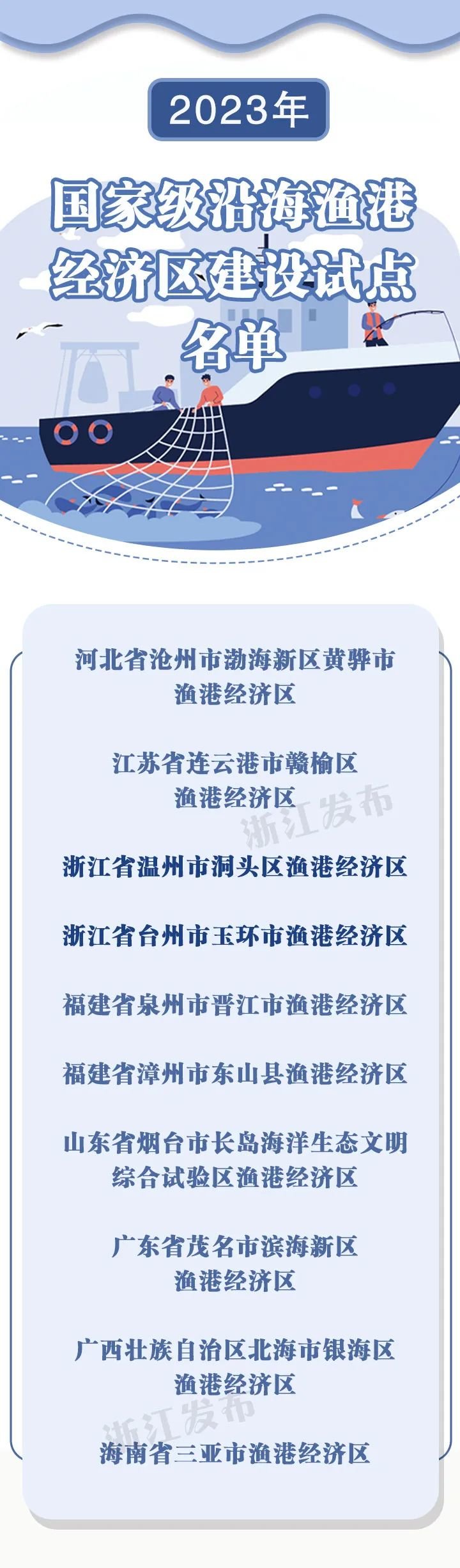 日前,农业农村部办公厅公布2023年国家级沿海渔港经济区建设试点名单,全国共有10家入选。其中,浙江两家榜上有名!