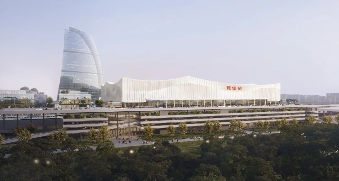 钱塘高铁站项目位于新湾街道、义蓬街道范围内,其在钱塘范围内用地面积约88公顷(均以最终批复为准),项目以“智涌钱塘、扬帆起航”为设计理念,整体造型如一艘乘风破浪的帆船。