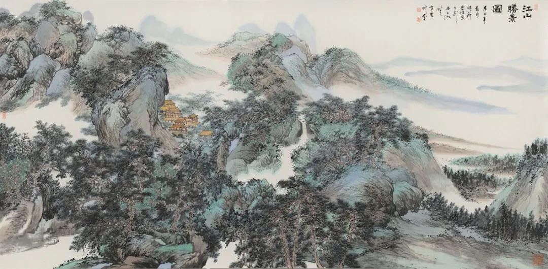 江山胜景图 129 ×248 cm 纸本设色 2022年