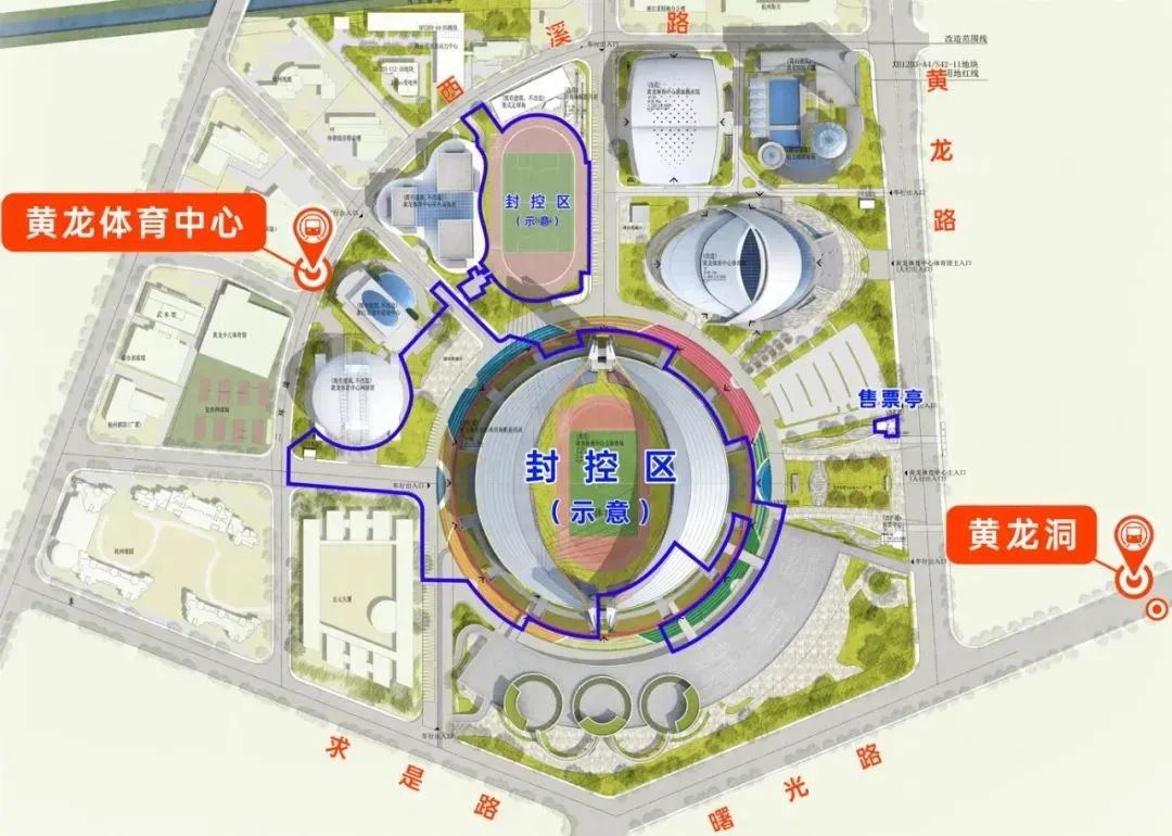 1.自6月29日20:00起,浙江省黄龙体育中心体育场和室外田径场(封控区域详见下图)将进行赛事封闭,除持赛事专用证件的车辆外,其他车辆禁止通行(7月6日0时起恢复正常通行)。