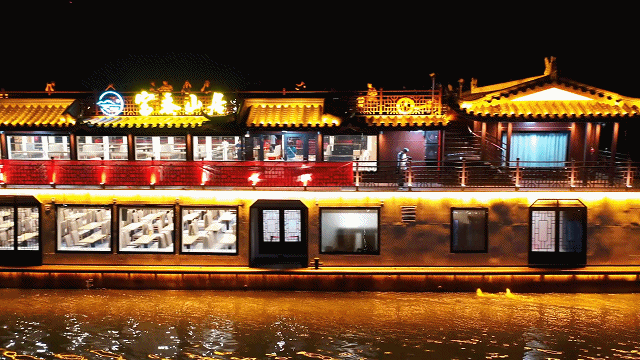 在富阳老城区下水门码头登上夜游富春江的游船,看两岸灯光璀璨,感受江风习习,畅游富春江,别有一番风味。