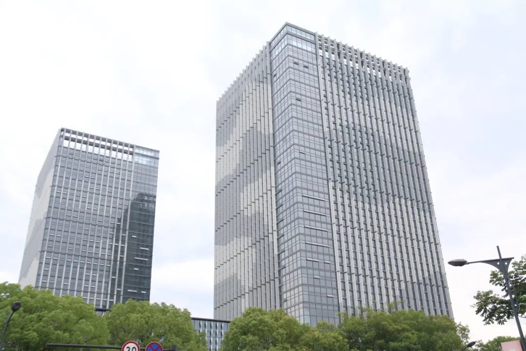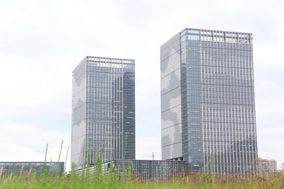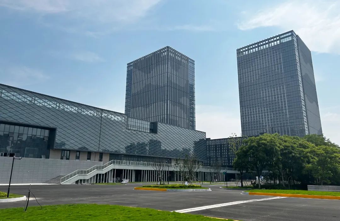 驱车在学源街附近,远远可看到一对“双子楼”相对而立,楼宇崭新锃亮,挺拔俊俏。幕墙上绵延流动的线条,颇有钱塘江水的韵味和灵气。