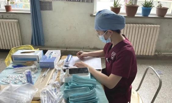 口腔诊查治疗室设在经消毒处理过的教室内,虽然沒有高大上的治疗椅、没有齐全的医疗器械,但大家的热情不减,工作的劲头很足。