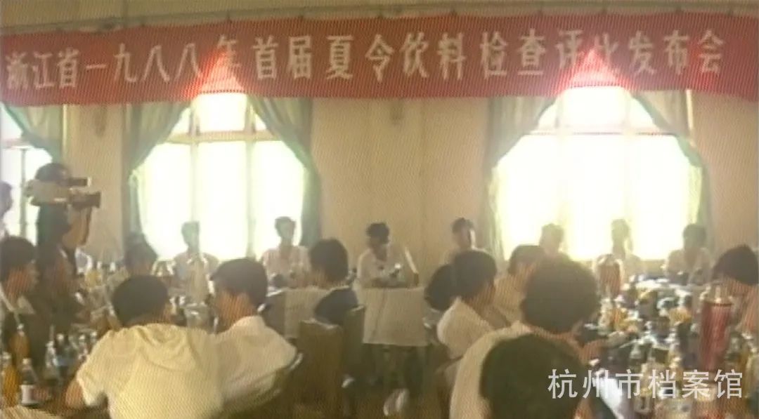 白糖棒冰、赤豆棒冰、小奶油等冷饮是当时人们的“消暑神器”,图为浙江省一九八八年首届夏令饮料检查评比发布会。