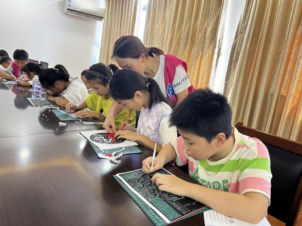 活动现场,志愿者老师向大家展示了许多关于的垃圾分类剪纸作品,并讲解了剪纸技巧,虽然很多孩子是第一次接触剪纸,显得生疏,但是在老师的指导下,个个都学得很认真,通过刻刀、剪刀等工具,一幅幅垃圾分类的剪纸作品顺利剪出来。