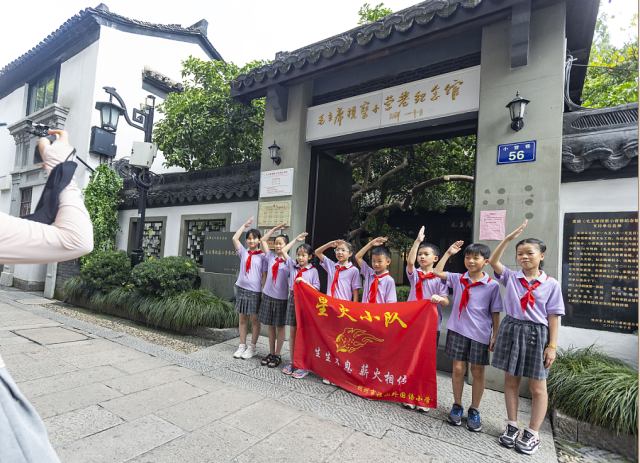 纪念馆内,“红领巾”宣讲团的小小讲解员们正在流利地讲述小营巷的“红色故事”。“今年上半年,红巷已接待1850批次18.15万人次,相当于每天有千余人来小营巷打卡。”来自杭州市时代小学五年级的讲解员陈聿杰言语中透着自豪。小朋友们自己编写解说词,用童言童语讲述“红色记忆”,传承“红色根脉”,让红色种子在青少年心田生根发芽。