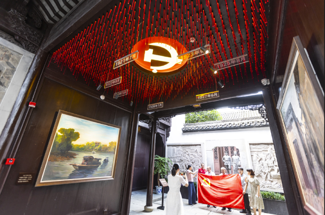 “我志愿加入中国共产党,拥护党的纲领,遵守党的章程,履行党员义务……”在中共杭州小组纪念馆宽敞的庭院里,以“潮涌钱塘”为主题的大型立体浮雕墙前,一批又一批来参观的党员停下脚步,面对巨幅党旗重温入党誓词,砥砺百年初心。