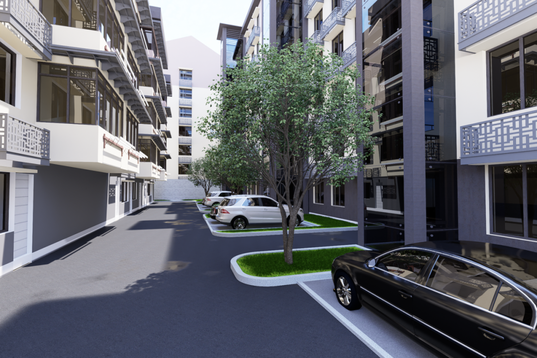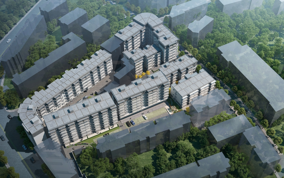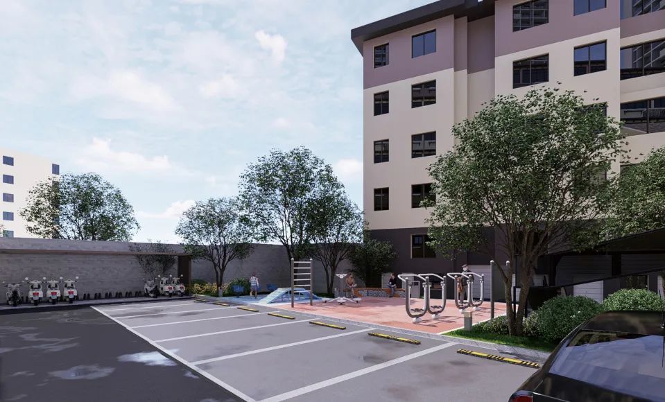 “内”提升 ——将原有的建筑辅房拆除,结合景观设置停车位和非机动车停车区,规范停车空间;增设休闲公园,增加小区绿化空间,提高小区品质;引进准物业管理单位,强化改造后小区后续长效管理。