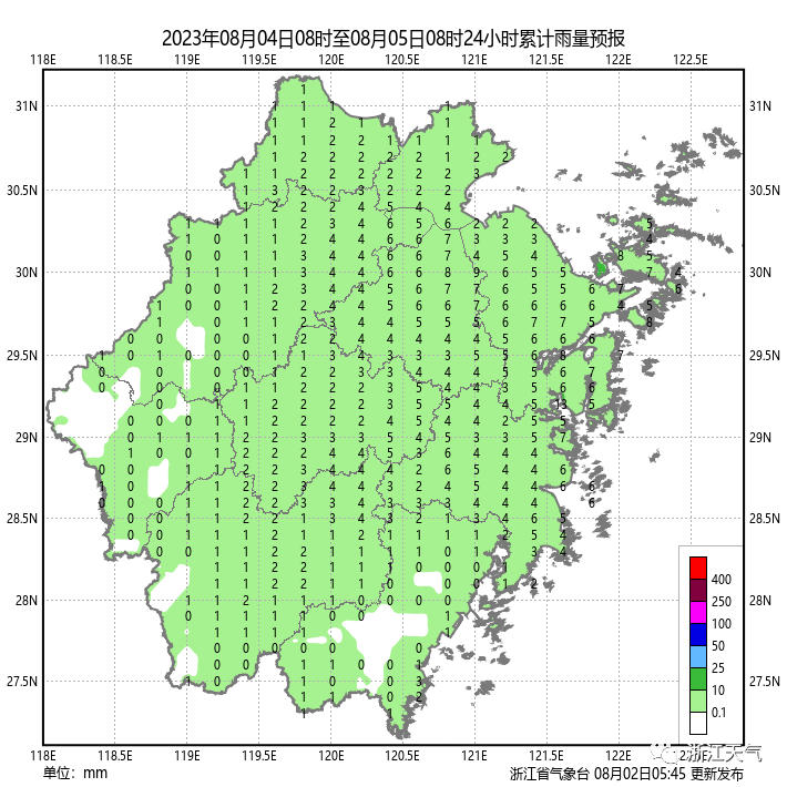 8月4日:沿海地区多云到阴有阵雨或雷雨,其中中北部沿海部分中雨;其它地区多云,午后有分散性雷阵雨。以上有雷雨地区可伴有短时暴雨。