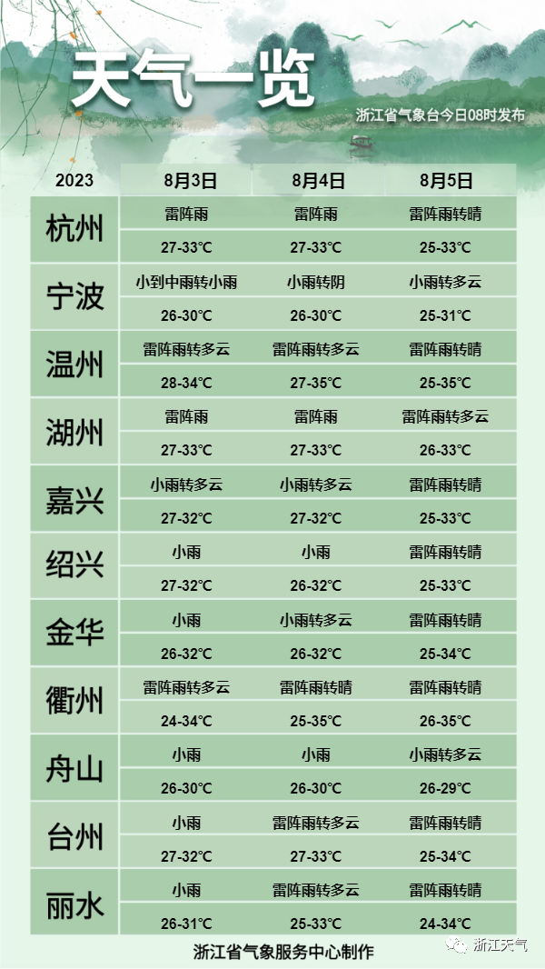 8月8-9日:全省多云到阴有阵雨或雷雨。