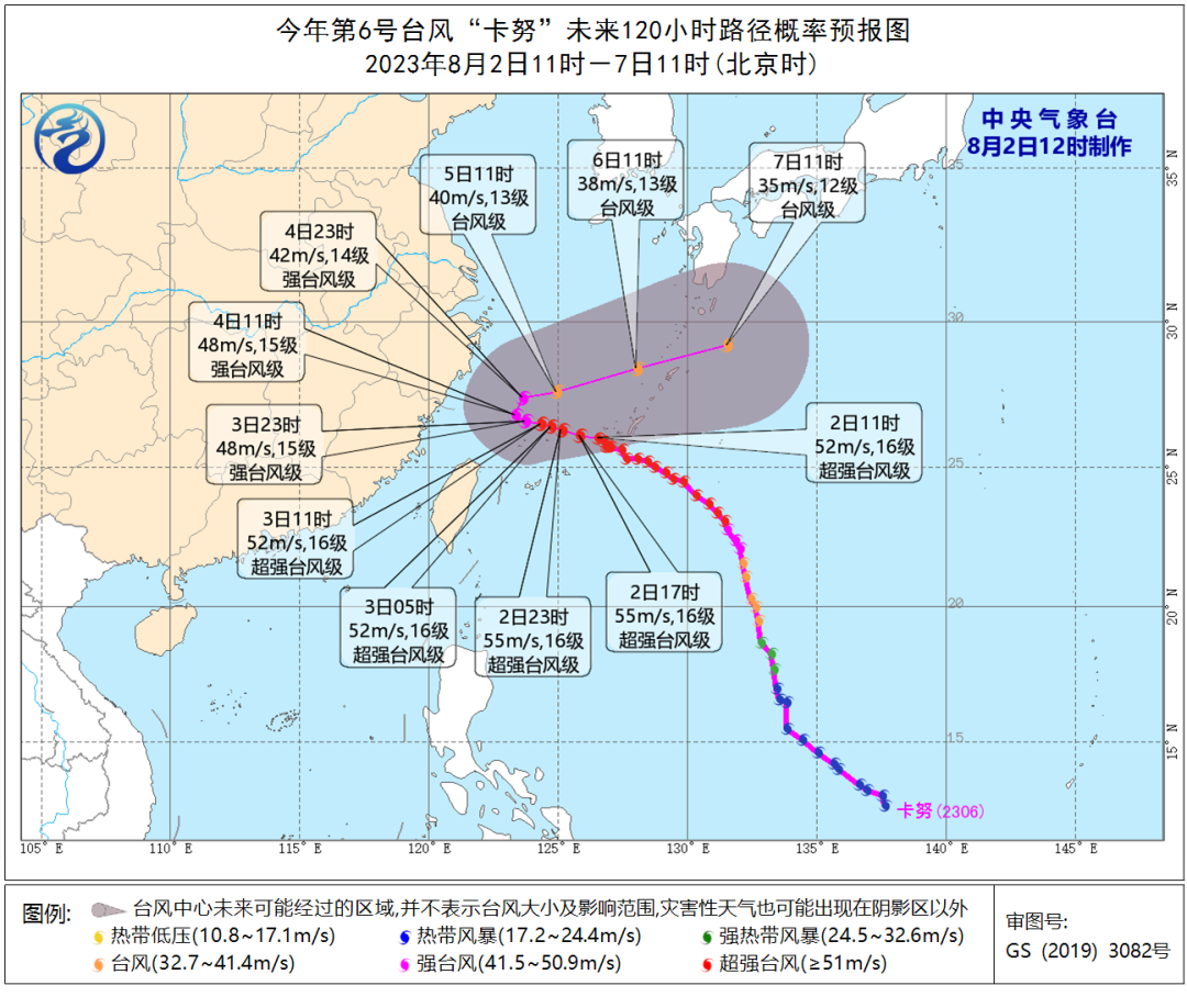 预计,“卡努”将以每小时10-15公里的速度向西偏北方向移动,强度变化不大。最大可能于3日夜里至4日上午在浙江南部近海转向东北方向移动,但仍不排除紧擦浙江沿海北上或登陆浙江的可能性。