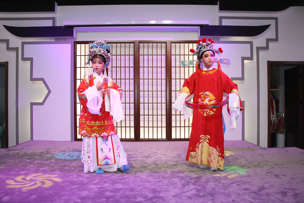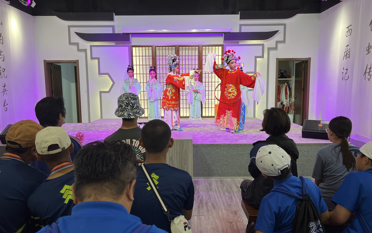 随后,台湾学子们还参观了干江中心小学“校中曲苑”越剧展厅,欣赏了该校“紫藤花越剧社”学员们带来的越剧选段表演,进一步加深了对传统戏曲的了解和认识。