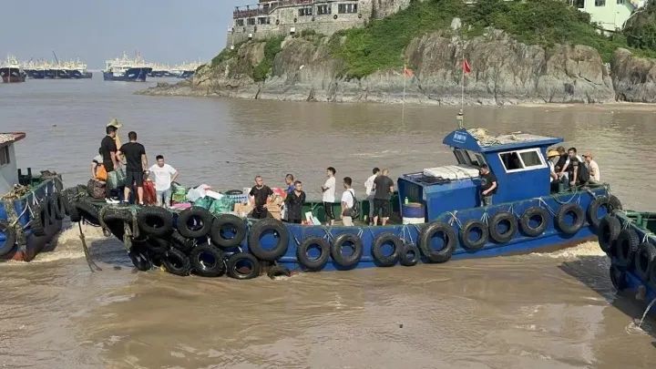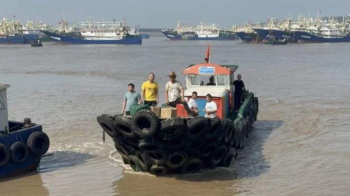 在玉环坎门中心渔港码头,目之所及,一派繁忙:渔民们有的三五成群,将煤气、米、油等生活物资搬上驳船;有的从亲人手中接过行李,匆匆赶往码头;还有的则对渔船上的仪器、捕捞工具进行开船前的最后检查。
