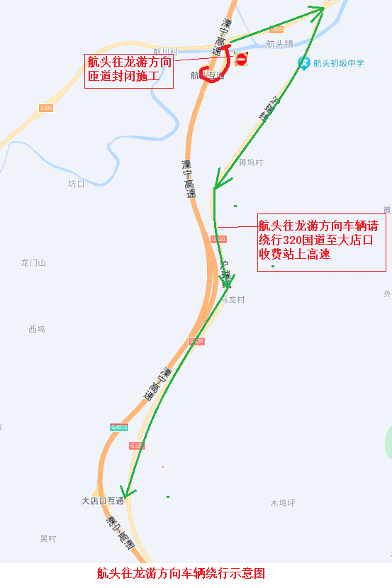 施工期间,G25杭新景(杭千)高速公路往龙游方向航头收费站进出口关闭。届时,往龙游方向下航头收费站车辆请在寿昌收费站提前下高速绕行。