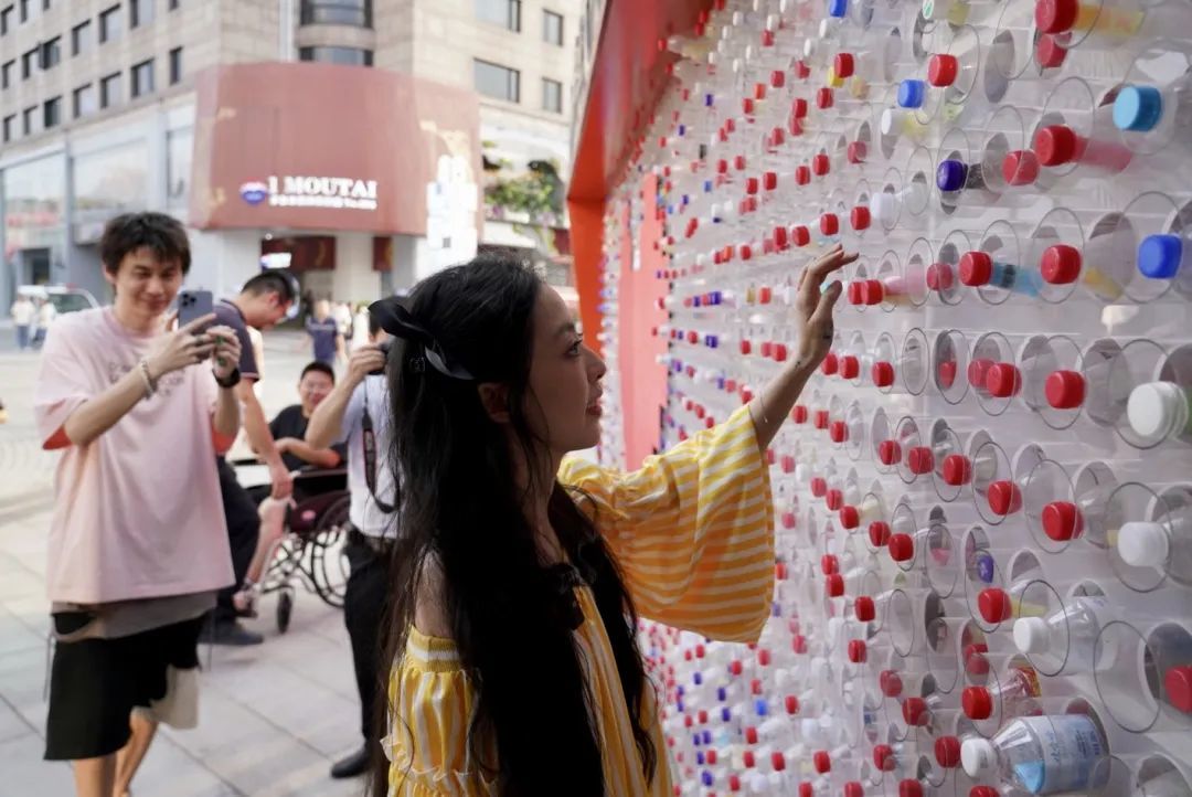 8月24日,方寸心在“微笑大瓶”许愿墙投下自己的许愿瓶