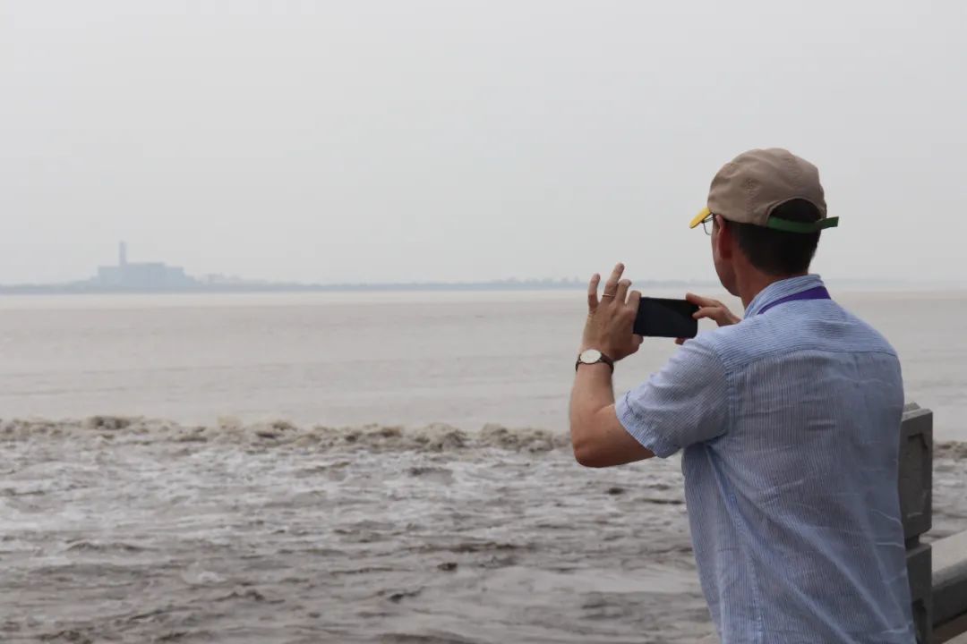 千百年来,钱塘江大潮闻名天下。参观过程中,来自英国的Nicholas John Spencer 说的最多的一个词就是“impressive”(令人印象深刻的),“你可以听到潮水声从远处传来,越来越近。这个时候,所有人都安静了,等待着它的到来。我知道钱塘江大潮达到最高时会更壮观,但今天依然让人印象深刻。”
