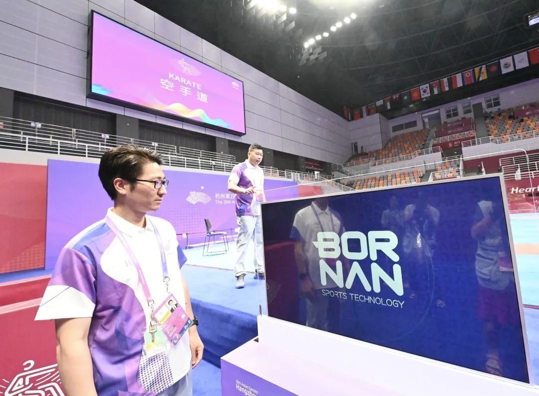 徐威武告诉记者,双面屏是一项非常成熟的技术,已经运用到不少项目的比赛中。这次临平体育中心体育馆在亚运会空手道比赛中采用了双面屏技术,是世界上空手道项目比赛首次采用这项技术。目的就是提高比赛的观赏性,提升观众参与度,更好地为运动员加油助威。
