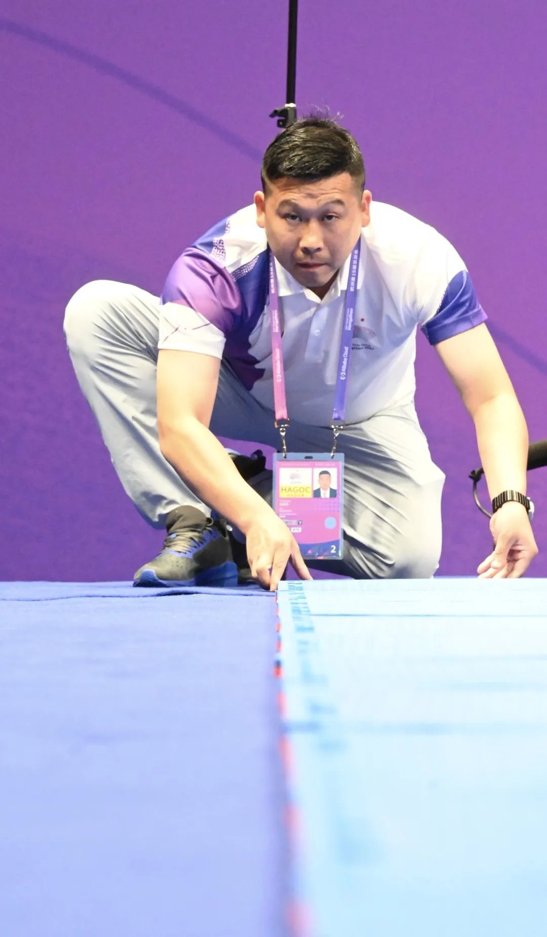转场的工作很繁琐,大到比赛场地的搭建、信息系统的连接等等,小到一张椅子的摆放、教练员手牌的整理等等,都不能有一丝的马虎。