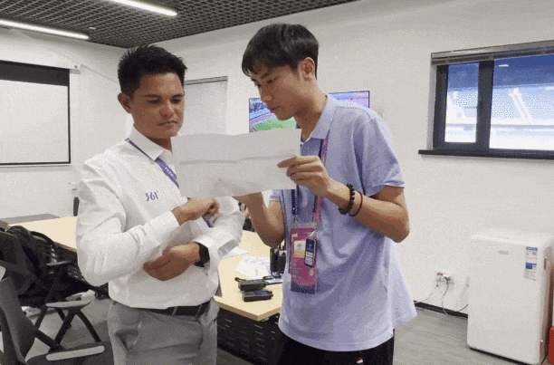 这位年轻的播报员是谁?这段话是提前准备还是现场即兴?记者找到了这位00后小伙洪宇青,并带大家一起来了解亚运会赛场播报员这份幕后工作。