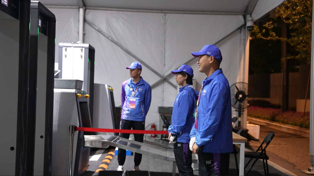 晚上换岗之后,安检口的安保人员需要整夜值守,直到次日6:00。不少“村民”会在夜间畅游杭城,感受江南美景,回到亚运村,快速便捷的安检服务必须得到保证。