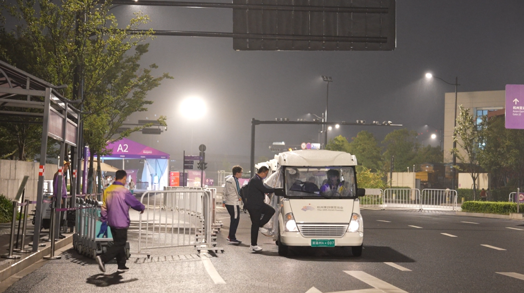 “凌晨1点之后,亚运村内还有循环班次,继续为大家服务。因为有些比赛时间比较晚,还有一些业余活动,另外夜宵结束得比较晚,不少运动员有夜间出行的需求。我们要尽可能保障他们在村内的出行。特别是像下雨的天气,有接驳车服务,出行体验会好很多。”杜威说:“临近闭幕,我们要站好最后一班岗,不能松懈。”