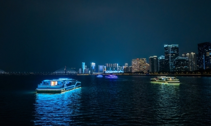 在刚刚过去的中秋国庆“双节”期间,新上线的杭州“三江两岸”水上黄金游线亚运专线十分火爆。尤其是钱塘江夜游游线,假期内每日接待客流超2500人次。熟悉杭州钱塘江游船的朋友一定会发现,钱塘江夜游的游船队伍里还多了新伙伴。