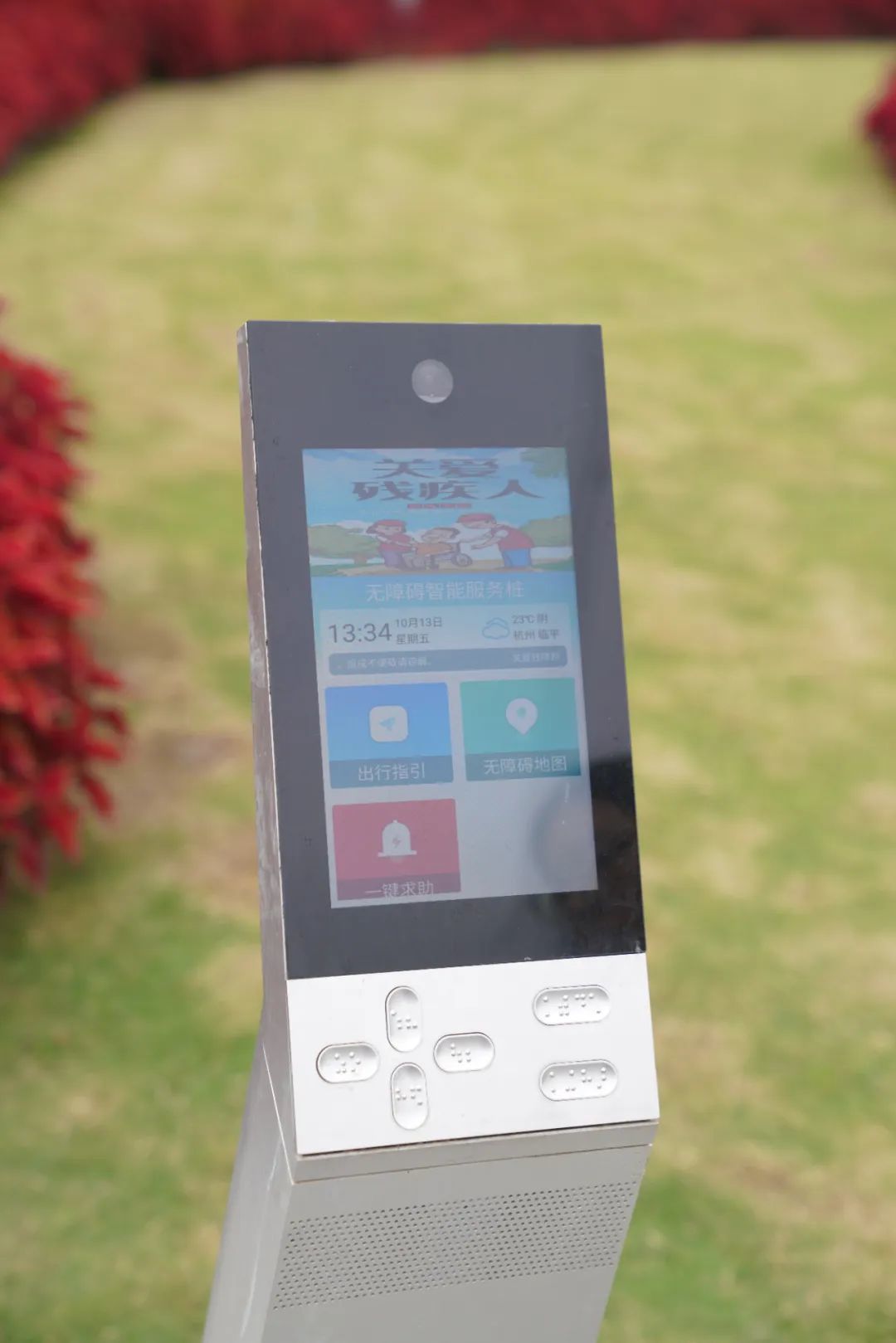 塘栖盲人门球基地入口处的智能服务桩