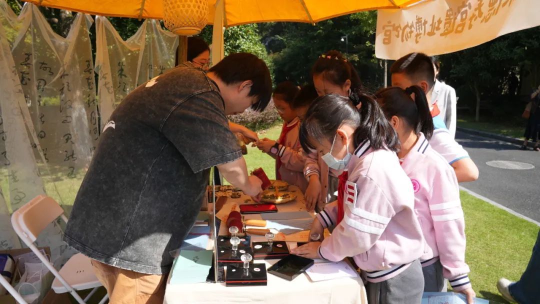 如今“盖章打卡”成为了不少文博爱好者种草博物馆的潮流风向标,本次展览以创新融合的方式,将十余年来杭州市博物馆青少年品牌教育项目汇聚一堂,并设计推出博物馆集章“一卡通”,让观众逛一家博物馆的一个展览便可一次性集齐23枚印章,为集章爱好者们开通了一站式玩转各大博物馆的“绿色通道”。