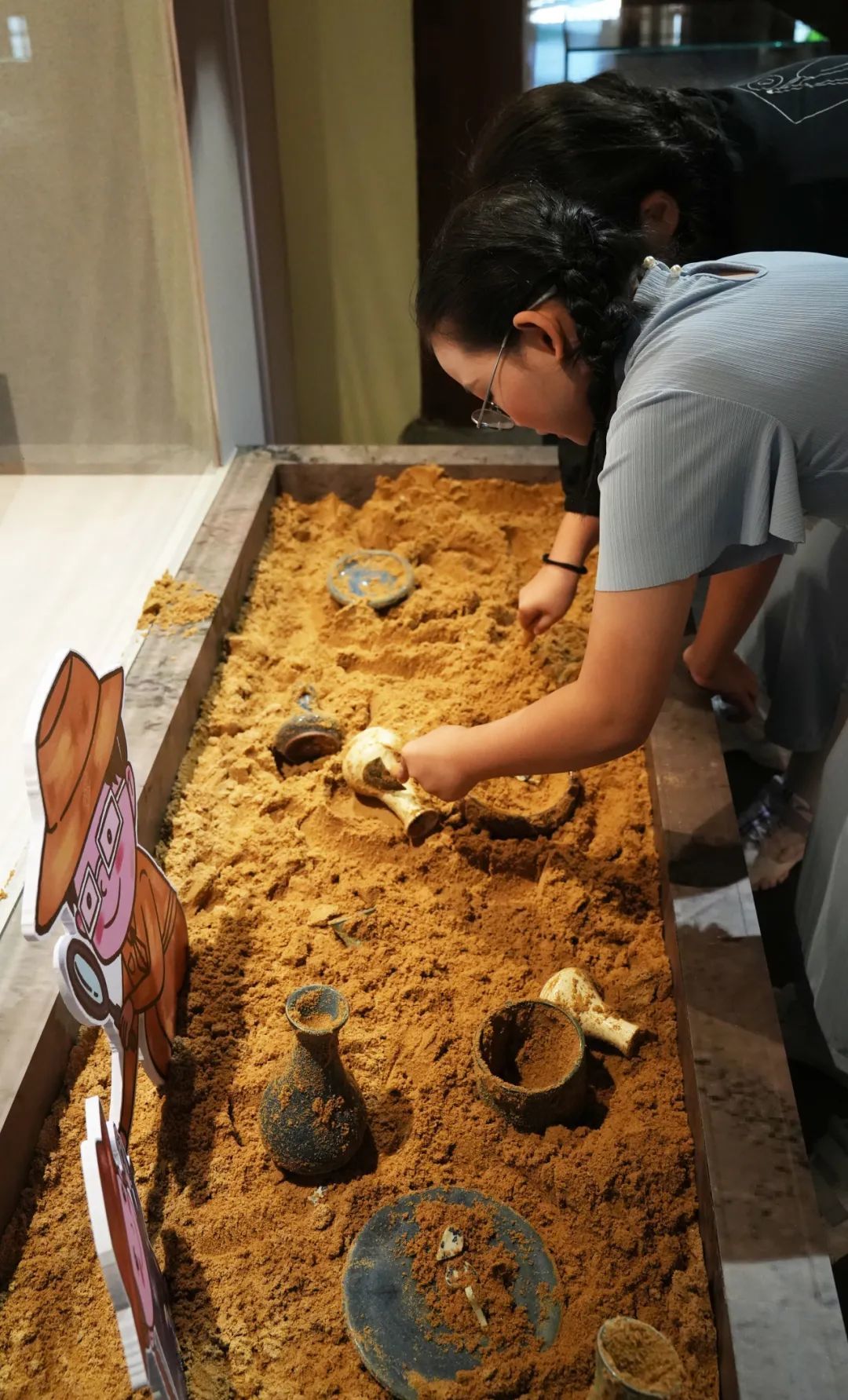 在展陈设计上,展览充分考虑青少年身心特点,用童趣化的展板营造轻松活泼的观展氛围,并设置传统游戏互动区、文物考古体验区、茶艺互动学习区、诗词长廊打卡区等不同互动体验区域,通过互动装置、沉浸式体验场景、裸眼3D等多样化的“释展”手段,将知识点转化为青少年喜闻乐见的可视化成果,在展现博物馆教育品牌的同时,让青少年们深度感受杭州市博物馆的朝气蓬勃和文化魅力。
