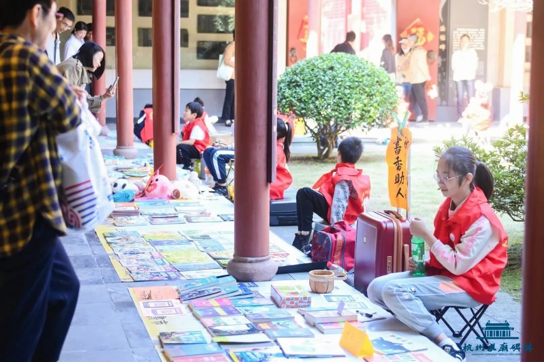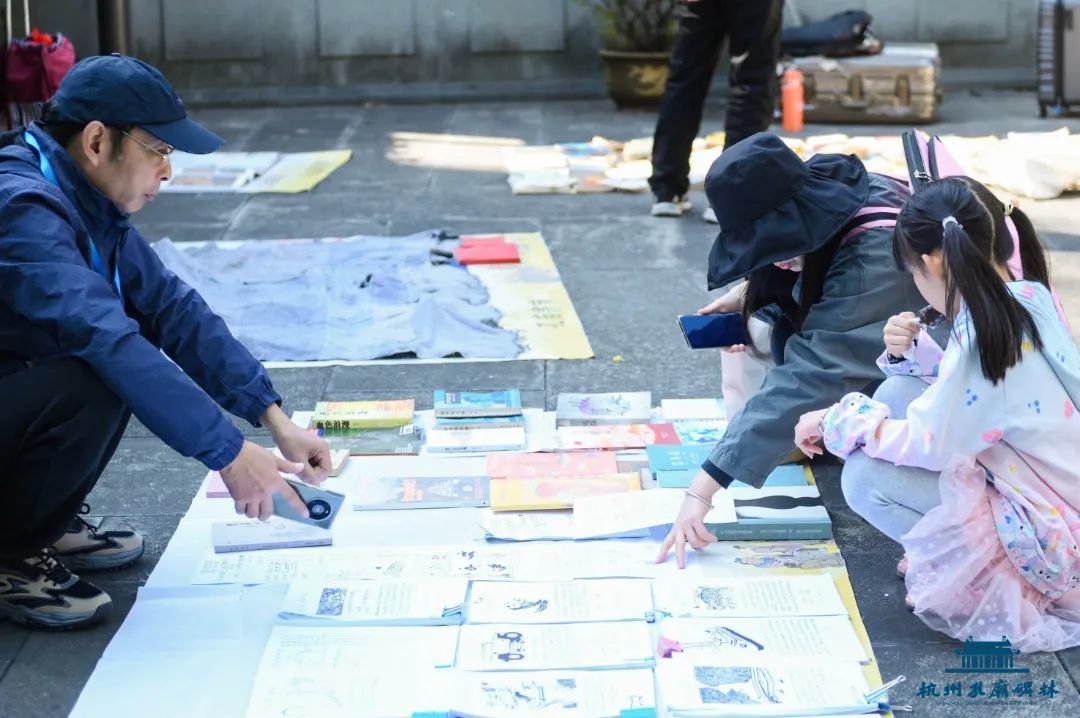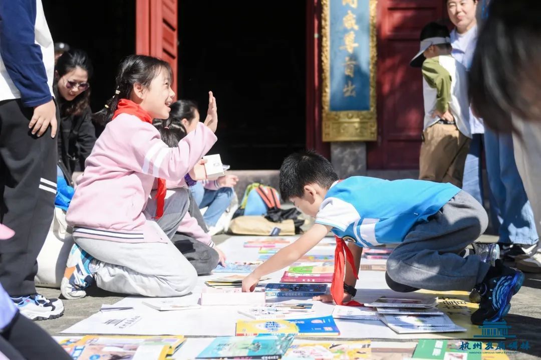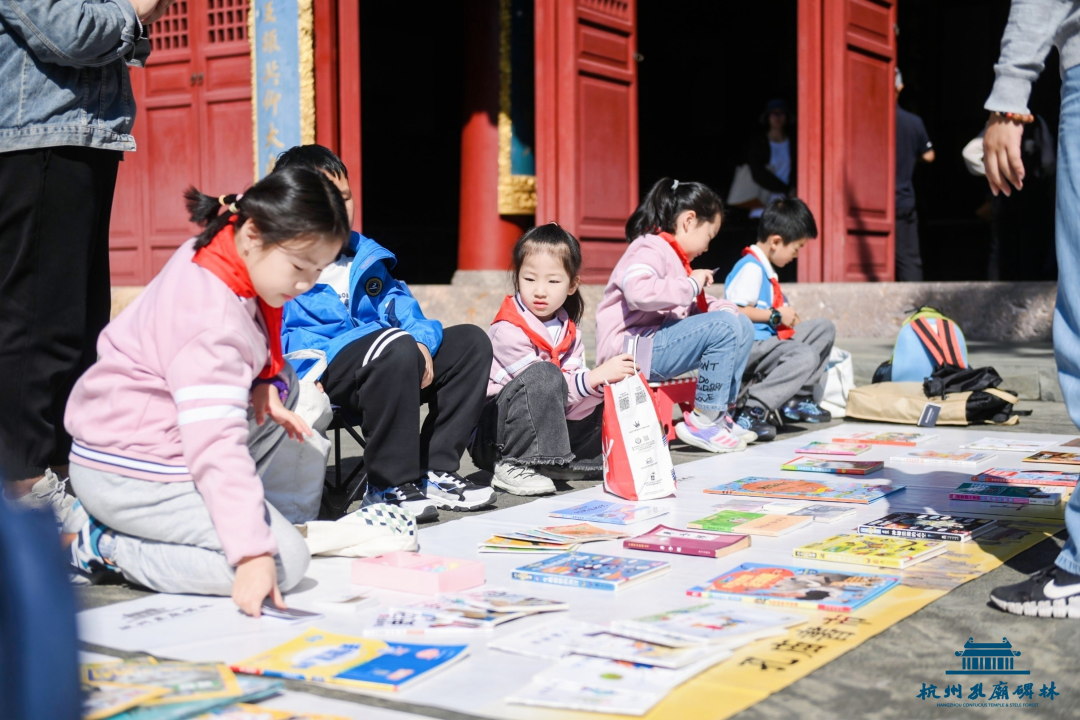 大成殿前的月台上是为杭城“小伢儿”们设置的童书跳蚤区域。青少年们把自己的闲置好书拿出来与大家分享,和小伙伴交换。