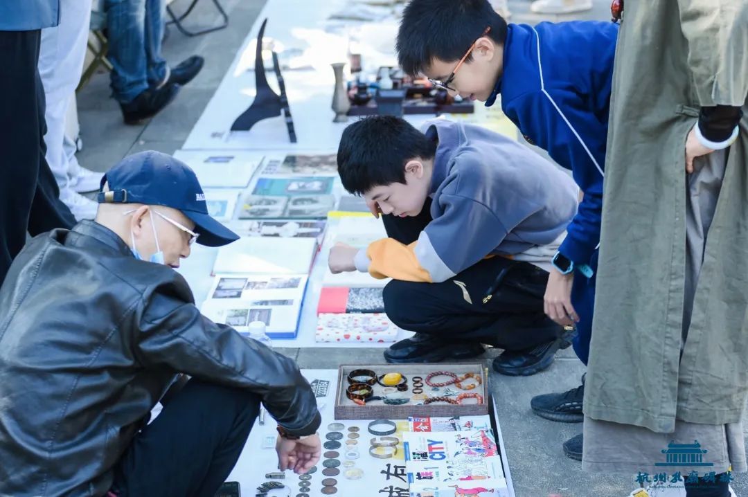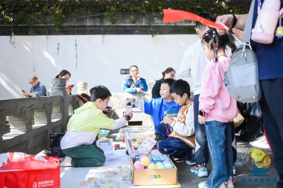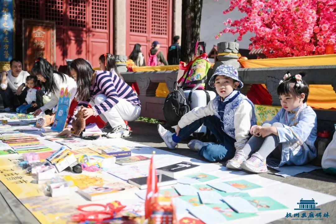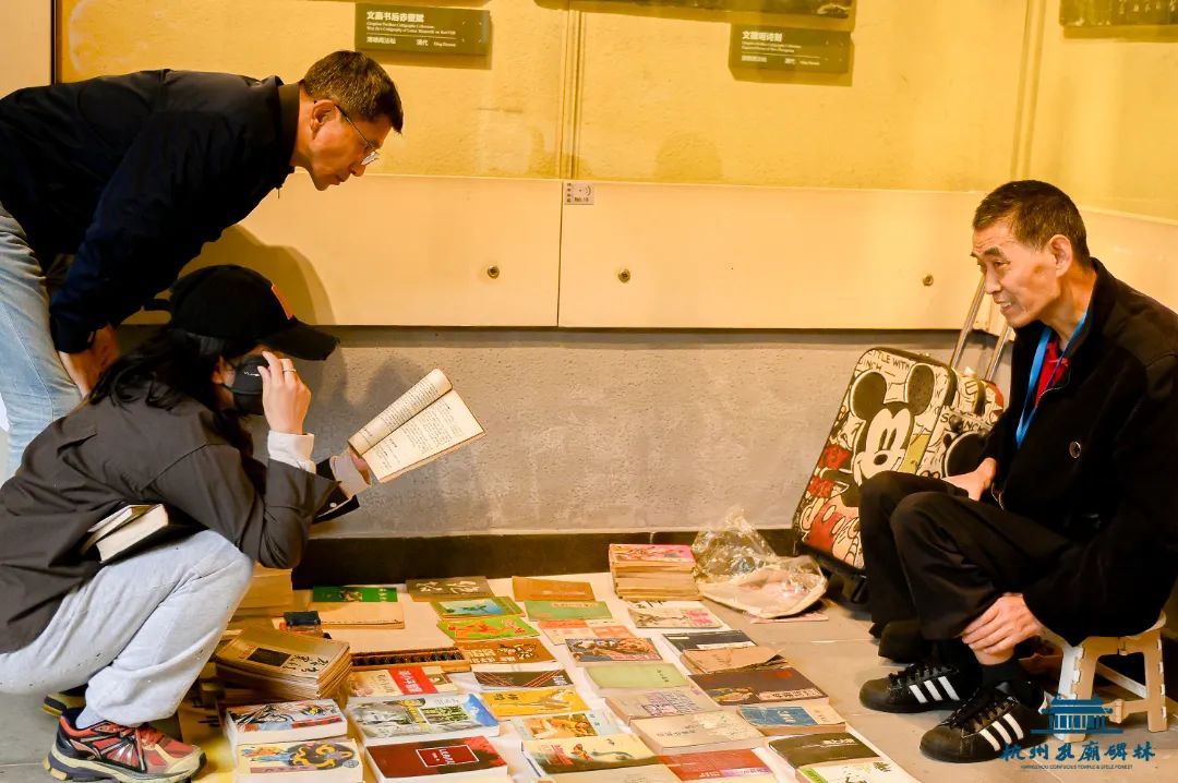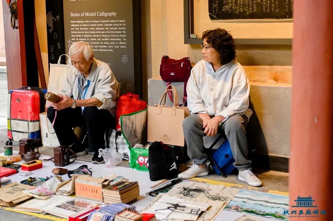 大成殿前的月台上是为杭城“小伢儿”们设置的童书跳蚤区域。青少年们把自己的闲置好书拿出来与大家分享,和小伙伴交换。