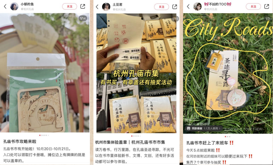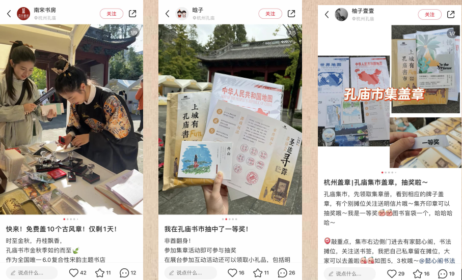汉服打卡活动邀请到近50名市民游客自发打卡发帖宣传,分享市集游玩攻略,邀请到汉服爱好者、盖章爱好者和年轻资深读者前往线下打卡参加活动。