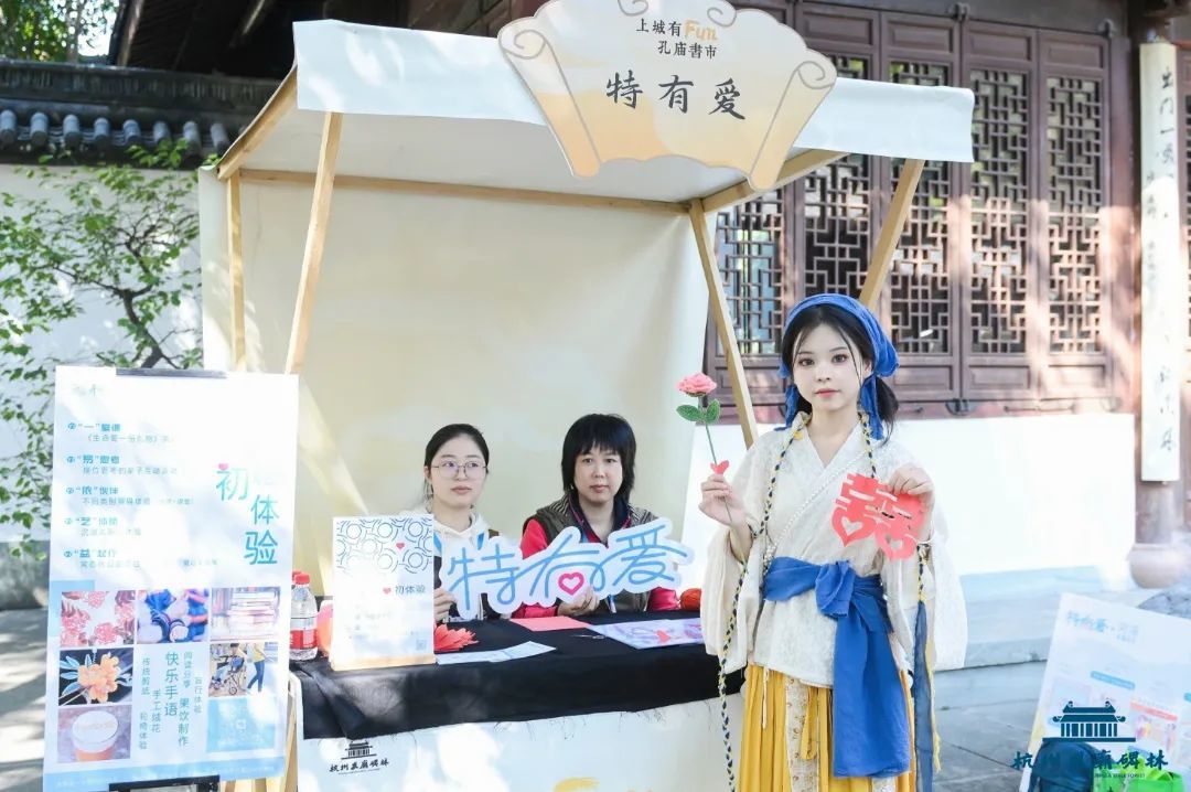 今年,“上城有FUN,孔庙书市”除了延续去年的旧书市集、童书交换、新书文创展示售卖,还新增了《圣迹寻踪》剧情打卡任务、“鲁壁藏书”仿古打卡点、汉服游园活动等亮点。