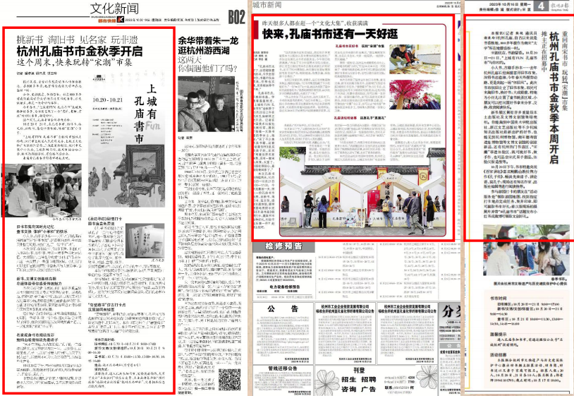 活动期间,新华社、浙江日报、杭州日报、都市快报等媒体对活动进行了重点报道,拓宽了展览的观众辐射度和社会效应,引发新一轮的讨论热点。活动主题鲜明、活动内容丰富、各具特色的区块划分不仅让市民游客们参加了一次能够寻书淘书的书市,更是对助力杭州宋韵文化高地建设的示范探索。
