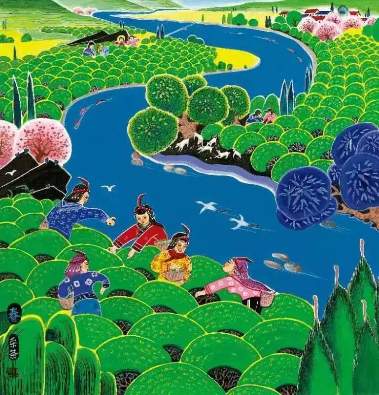 金秋十月,瓜果飘香,广袤的田野间一派“丰”景画卷;溪水潺潺,碧野绵延,采茶女们穿梭在生机勃勃的茶林里;一场山地自行车大赛在旖旎的乡村风光中展开,运动的激情与斑斓的景色融为一体……由余东农民画家郑利民、兰根良、郑根良等人创作的五幅作品,被印在柔软绮丽的丝巾之上,极致展现着中国丝绸的华丽绚烂。鲜活明亮的用色、浓烈奔放的笔触吸引了不少观众驻足欣赏、细细品味,深深沉醉于乡土与艺术相融、质朴与浪漫兼具的中华传统文化魅力之中。